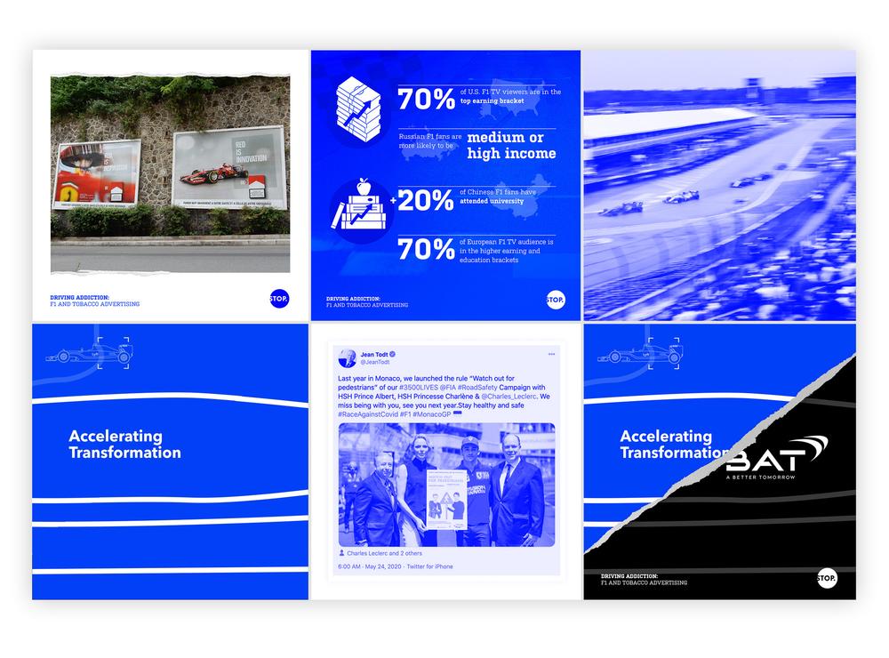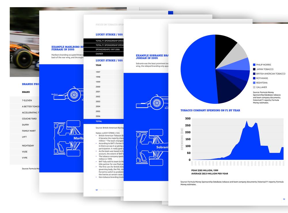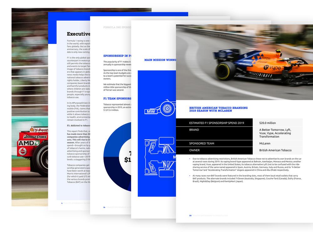 I designed and art-directed the digital and print version and accompanying social and digital promotion of this report, highlighting the history of tobacco sponsorship in F1 racing and the duplicitous methods still being used to advertise addictive products to fans.