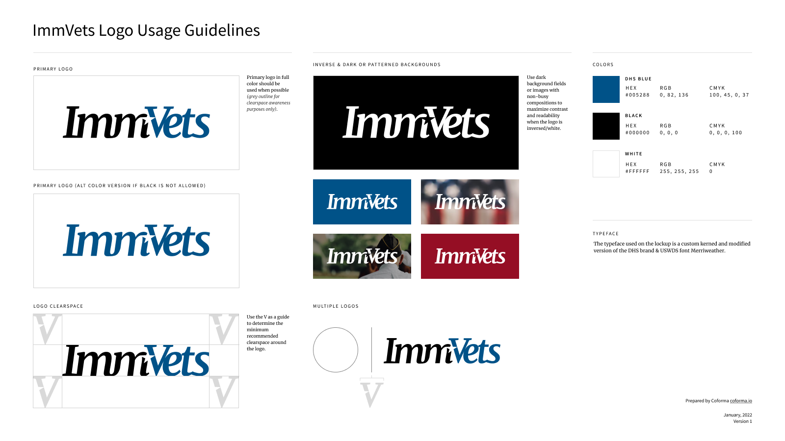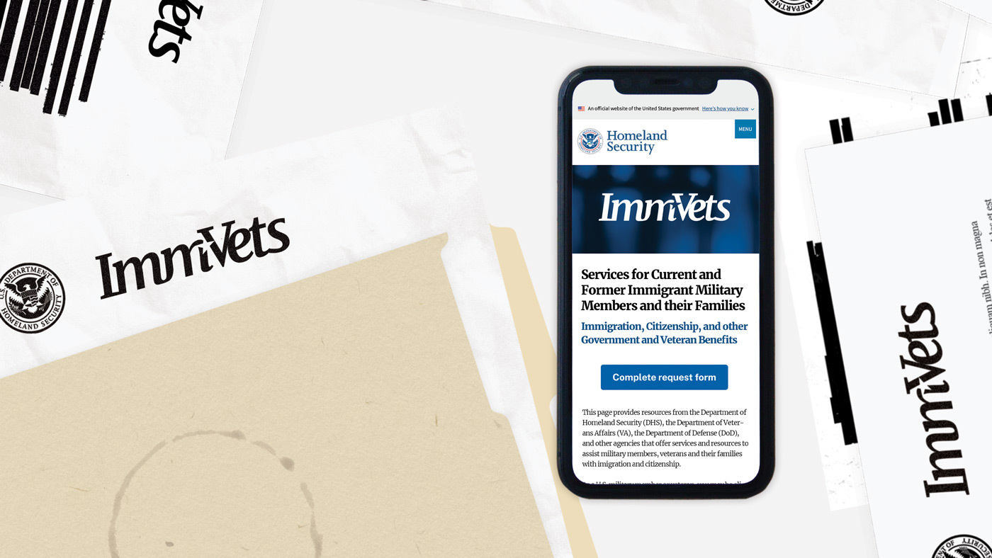 I developed a logo and guidelines while at Coforma for a Department of Homeland Security Task Force dedicated to getting deported veterans the benefits they are/were entitled to. This was a quick sprint and involved multiple rounds of research and iterations as well as real-life user testing with active and retired veterans for feedback.