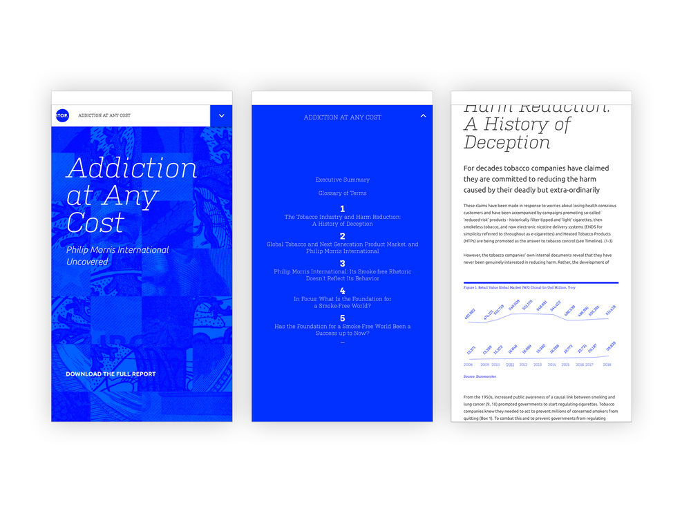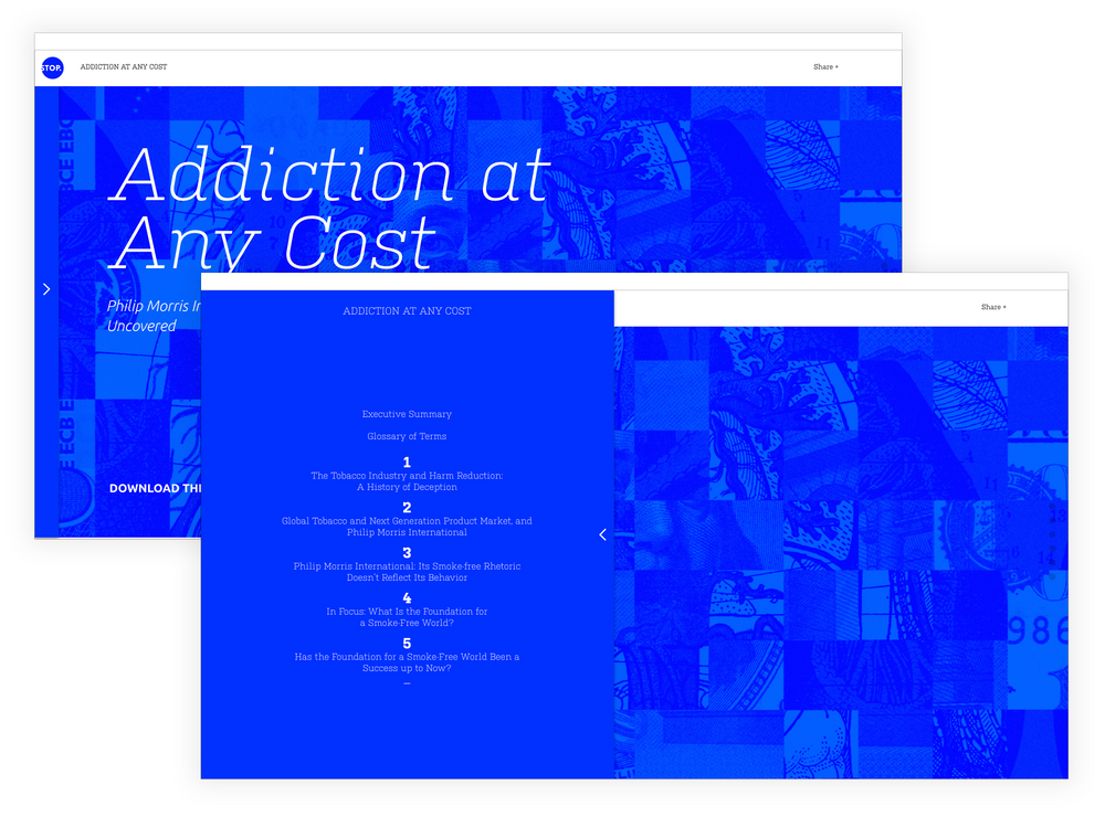I designed this report for the tobacco industry watchdog Stopping Tobacco Organizations & Products (STOP) developed to analyze historical tobacco industry sales data and findings from tobacco industry monitoring.