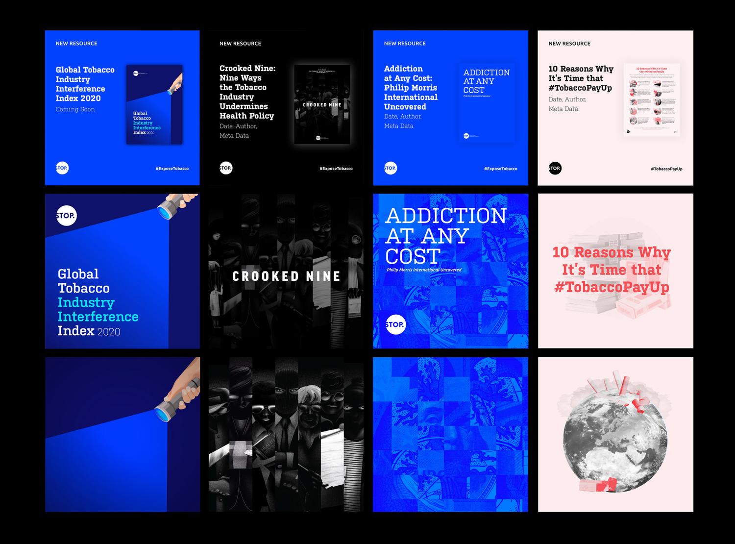 I redesigned and updated the brand and identity for the tobacco industry watchdog, Stopping Tobacco Organizations & Products (STOP), aligning the brand across all their physical and digital properties, as well as developing a media and publication template system.